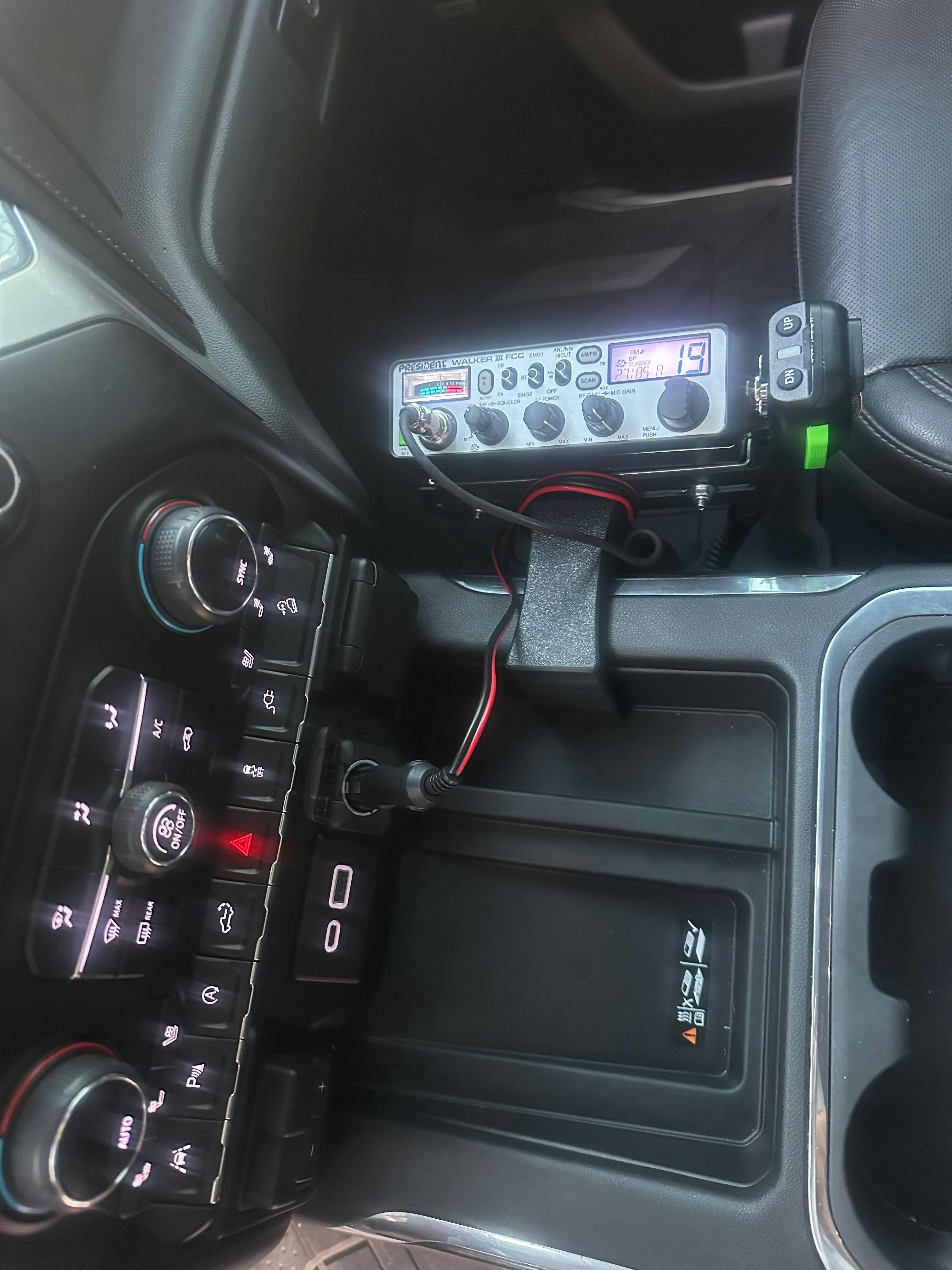 Installed the radio mount in my wife's Ram Power wagon. Still allows access to cup holders and the 4 wheel drive shifter.